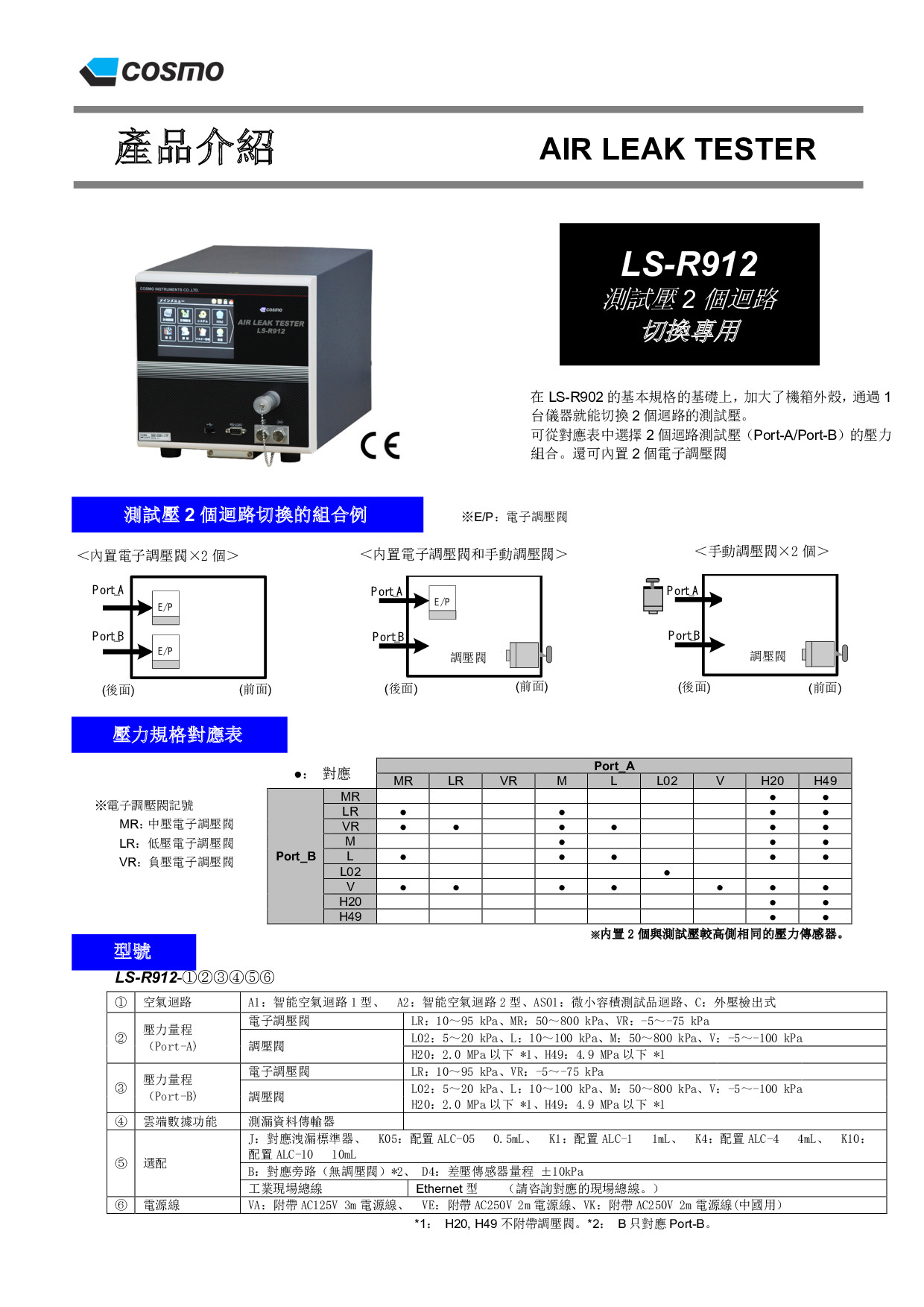 可從對應表中選擇2迴路(Port-A/Port-B)的壓力組合。還可內置2個電子調壓閥。