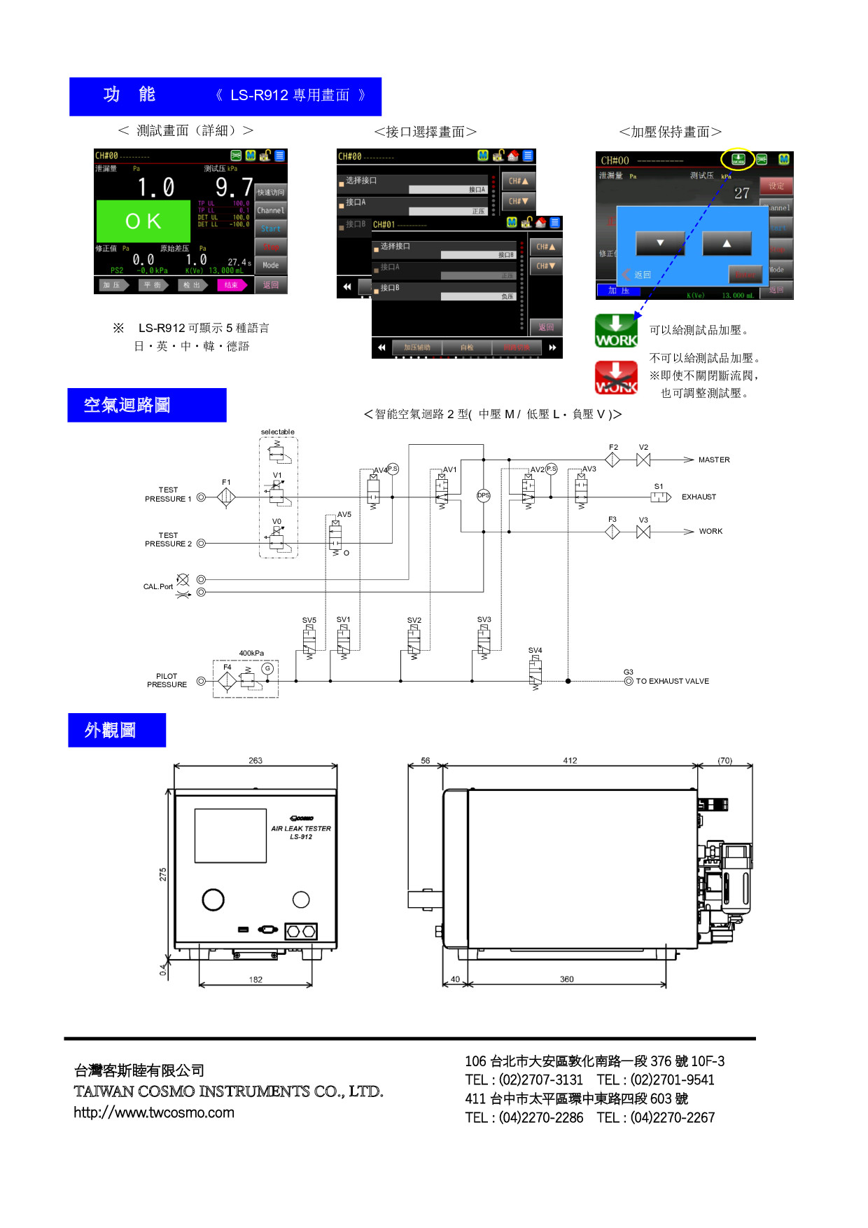 規格的基礎上,加大了主機殼外殼,通過1台儀器就能切換正壓•負壓2個迴路。